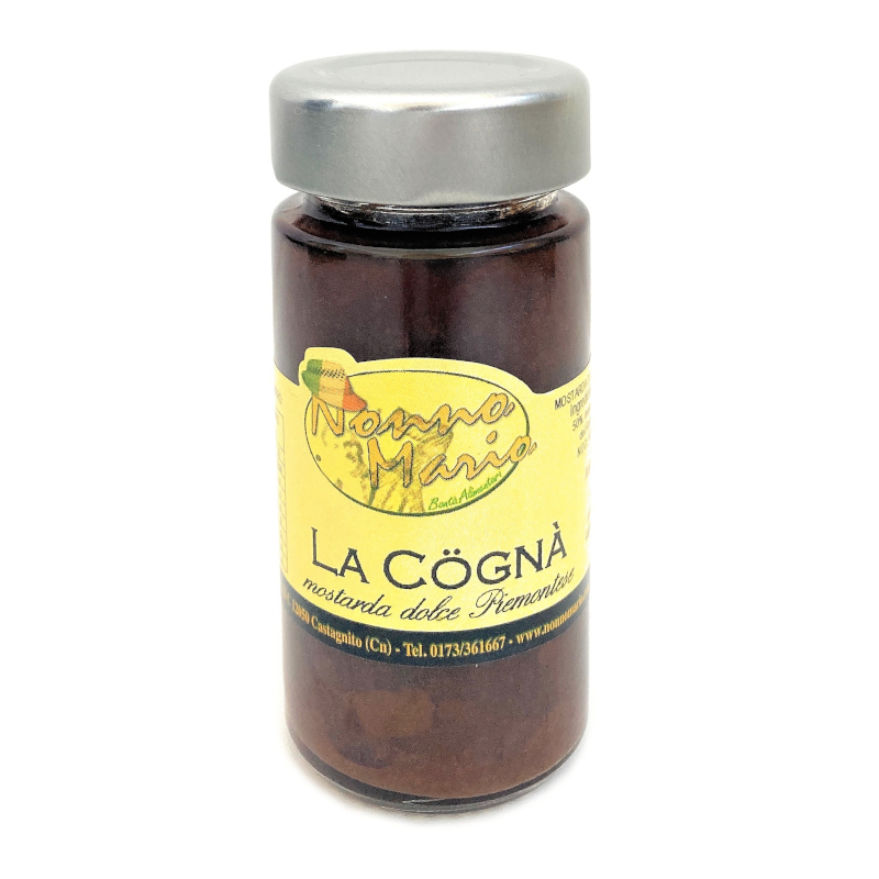 Tipica mostarda dolce piemontese, antica ricetta delle Langhe dalla lunga e laboriosa cottura. Prodotta con succo d’uva, mele, pere, pesche, zucca e spezie. Eccellente con carni bollite o polenta, Formaggi caprini ed erborinati come tume di montagna e gorgonzola.