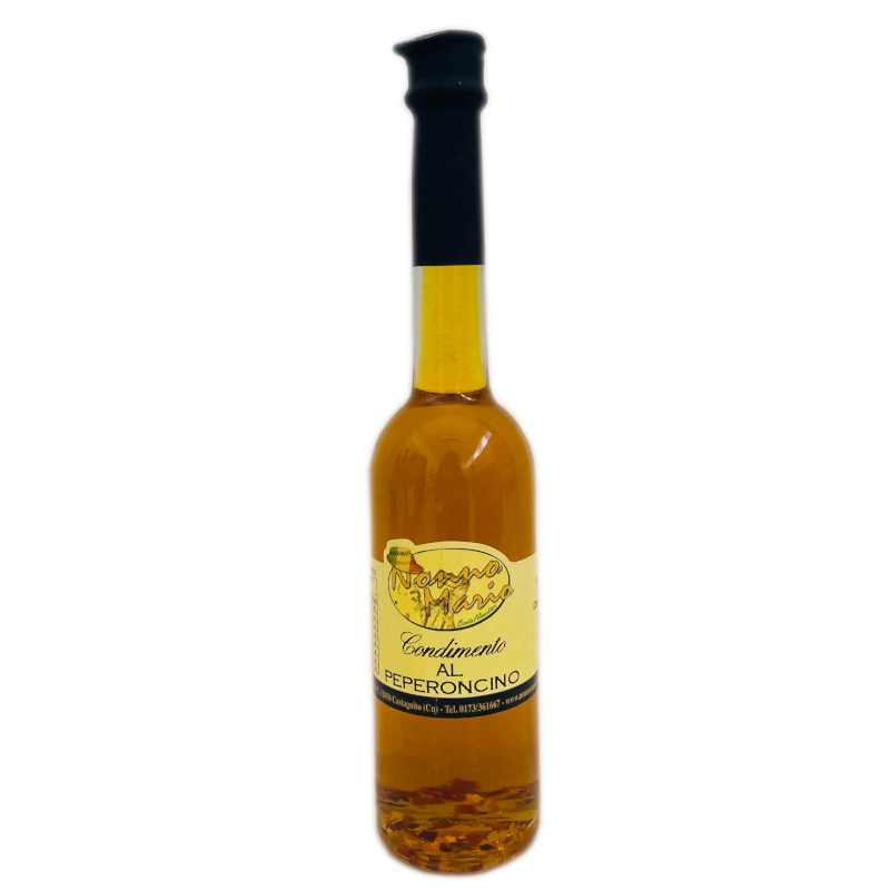 Condimento aromatizzato al peperoncino, ideale per personalizzare a proprio piacimento, donando un pizzico di allegria, pasta, uova, pizza, verdure. Se ne consiglia l’utilizzo sempre a crudo per mantenere intatta la fragranza