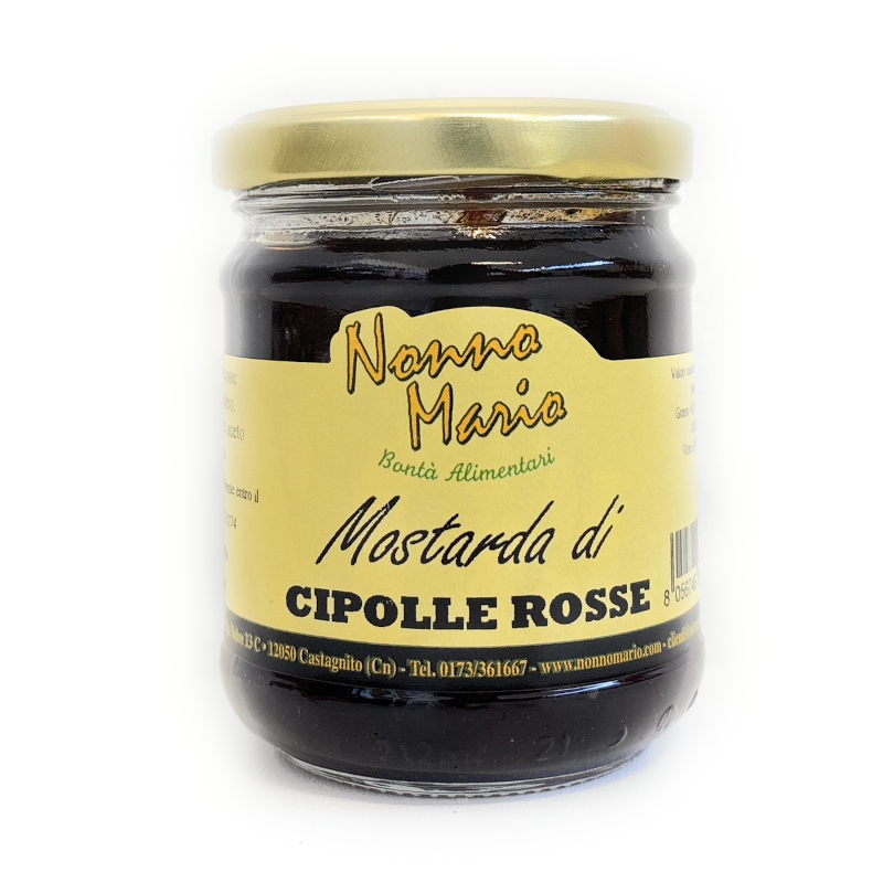 Superba crema mostarda a base di cipolla rossa rinomata per la sua dolcezza e suo particolare sapore, aromatizzata con aceto e spezie per accompagnare formaggi anche piccanti e saporiti.