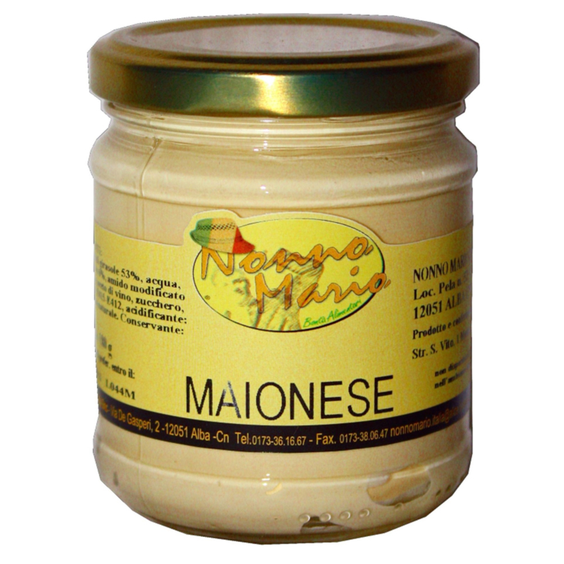 INGREDIENTI: Olio di semi di girasole 53%, Acqua, Tuorlo d Uovo 6%, amido modificato di mais, sale, aceto di vino, zucchero, addensanti, acidificante, aroma naturale, E200.